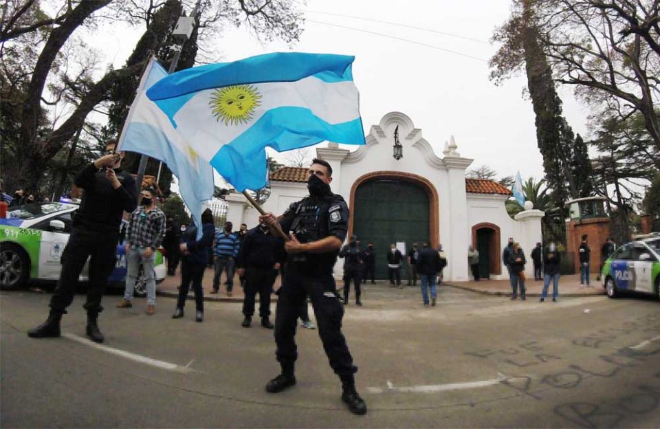 El miércoles 9 decenas de manifestantes, miembros de la Policía Bonaerense y vecinos de la zona, cercaron la Quinta Presidencial de Olivos con vehículos patrulleros y armas reglamentarias. Además circularon por sus inmediaciones con una actitud que los testigos califican de sediciosa y golpista, ello causó un fuerte repudio de dirigentes del oficialismo y la oposición, que coincidieron en que es “inadmisible” una manifestación con armas frente a la residencia del presidente Alberto Fernández.