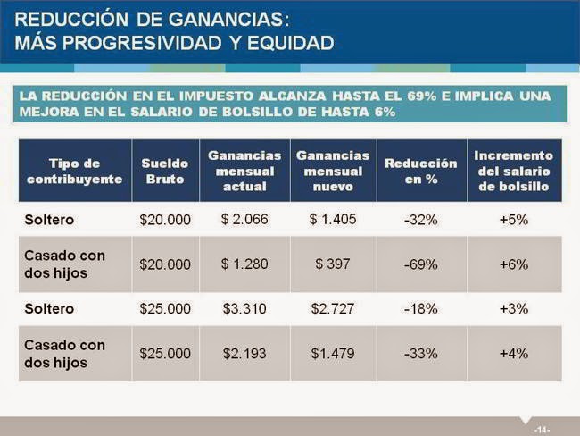 «Anunciamos una reducción del Impuesto a las Ganancias a los trabajadores que ganan entre 15.000 y 25.000 pesos. Esto implicará un aumento en el salario de bolsillo del 6% para casados y del 5% para solteros», escribió la mandataria en su cuenta de Facebook.