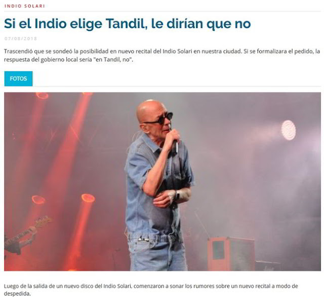 Este martes, al periodista del Suple No Se le llegó una información que rezaba que el Indio sondeó durante el fin de semana dos ciudades para posibles shows a fin de año.