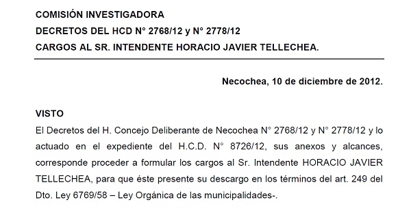 LANUEVACOMUNA.COM publica el informe completo que se elaboró y que se envió al intendente municipal para que elabore su defensa en el término de 10 días.