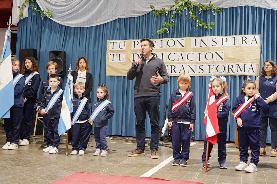 En su mensaje ante inspectores, docentes, alumnos y público en general, el jefe comunal subrayó la importancia de reconocer lo hecho en materia educativa, pero sobre todo de mirar hacia adelante, fortaleciendo la educación pública como herramienta de igualdad y libertad.