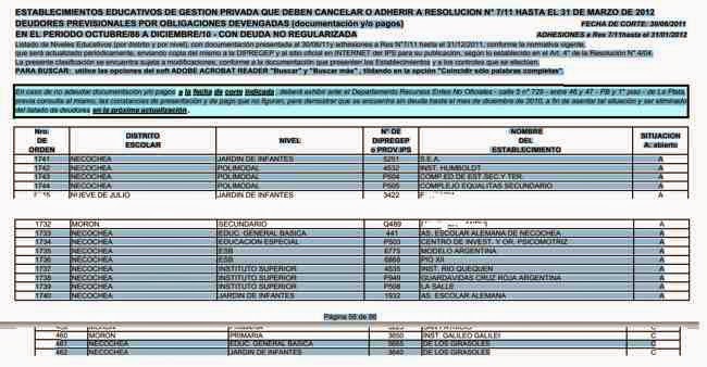 Actualmente en territorio provincial funcionan 6.493 niveles educativos de gestión privada (una escuela suele tener varios niveles). En el año 2011 había unos 3390 niveles deudores de un total de 6719 niveles funcionando. Este año poco más de 900 niveles deudores no han regularizado en planes, lo que representa el 11% de evasión.