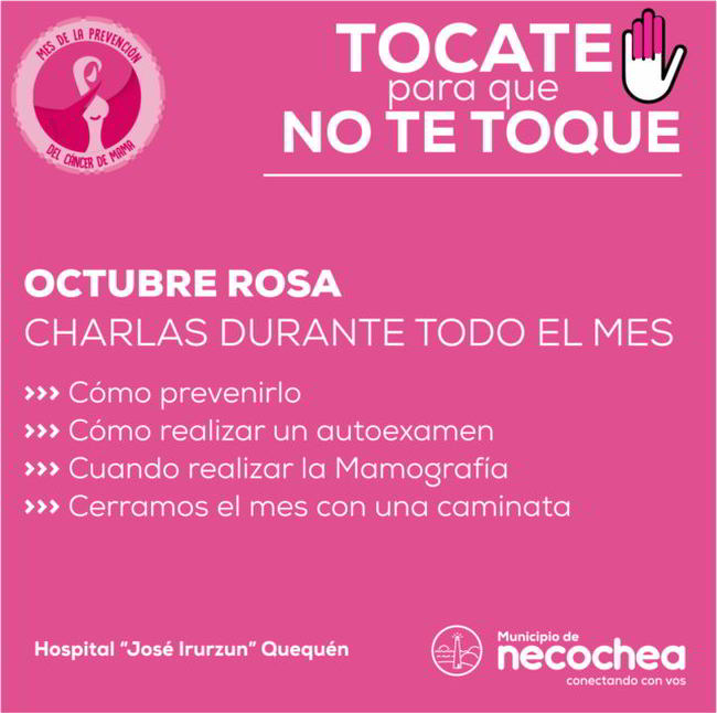 En un trabajo interdisciplinario, se realizarán charlas durante todo el mes de octubre en el hall de la institución quequenense, gratuitas y abiertas a la comunidad; mientras se siguen organizando acciones de este tipo en cada Centro de Atención Primaria de la Salud, para llegar a la máxima cantidad de vecinos posible.