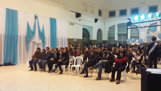 Ante la atenta mirada de un salón colmado de asistentes, entre ellos, los ediles del Frente para la Victoria, Francisco Medina y Jorge Martínez, y la concejal por el Frente Renovador, Cristina Biar, los alumnos destacaron que «el bicentenario de la independencia nos invita a reflexionar y al mismo tiempo nos interpela», afirmando a la vez que «la independencia es un proceso permanente, no es el fin de un camino, sino el camino mismo de independizarse».