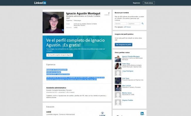 Así se desprende de datos a los que accedió El Destape. El joven revela en su Linkedin que actualmente es «Asesor en Comunicación» de Unión por la Libertad (el partido que conduce la ahora ministra de Seguridad de la Nación).