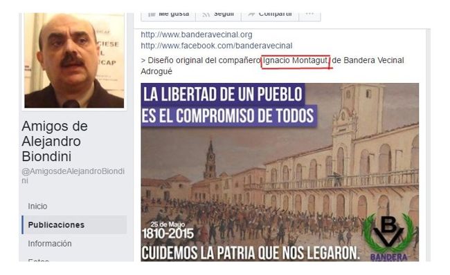 En el grupo de Facebook «Amigos de Alejandro Biondini», donde se da cuenta de la actividad política del líder neonazi, el joven Montagut trabajó para la realización de un diseño que fue publicado por el grupo.