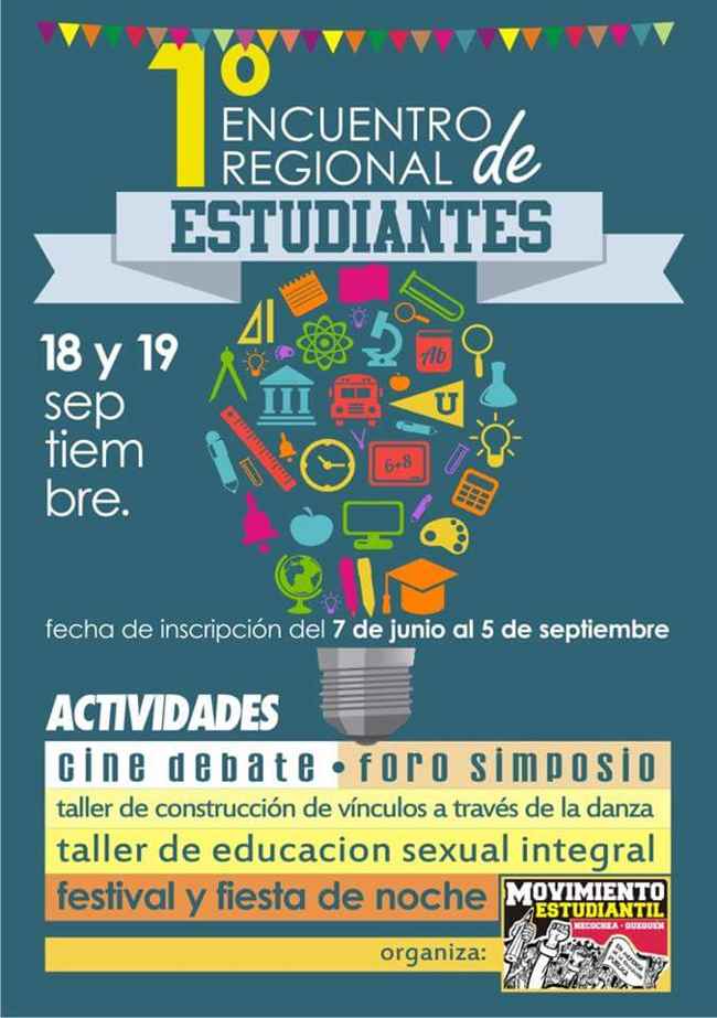 Los días viernes 18 y sábado 19 de Septiembre se llevará a cabo el 1º Encuentro Regional de Estudiantes.