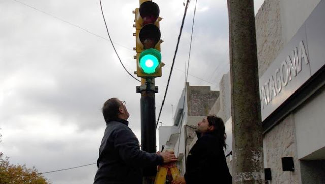 Desde el área de Señalización municipal, se procede a la prueba de colocación de iluminarias LED en semáforos, con el objetivo de lograr una modernización en el sistema. En este caso, se realizó una prueba en los equipos de la esquina de calles 56 y 61, a media cuadra de la Municipalidad.