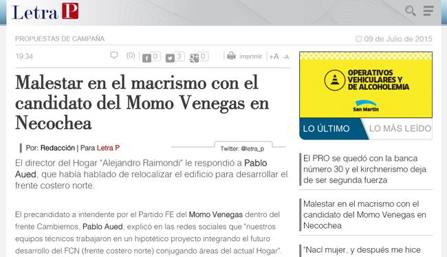 Malestar en el macrismo con el candidato del Momo Venegas en Necochea