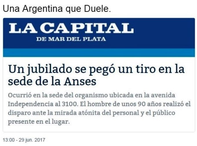 Días pasados, el suicidio de un jubilado en la ciudad de Mar del Plata conmocionó a todo el país. esde el gobierno y los medios hegemónicos se le trató de sacar la connotación política.