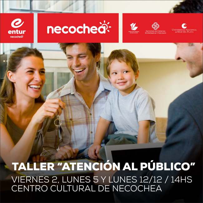 La Municipalidad de Necochea, junto al Creap/UNMdP Necochea, anuncia que el próximo viernes 2 de diciembre, desde las 14 hs., comenzará el taller de extensión “Atención al Público” que, a cargo de la Facultad de Ciencias Económicas y Sociales de la Universidad Nacional de Mar del Plata, tendrá lugar en las instalaciones del Centro Cultural Necochea, ubicado en la calle 54 Nº 3062.
