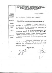 Día del Empleado de Comercio 2019