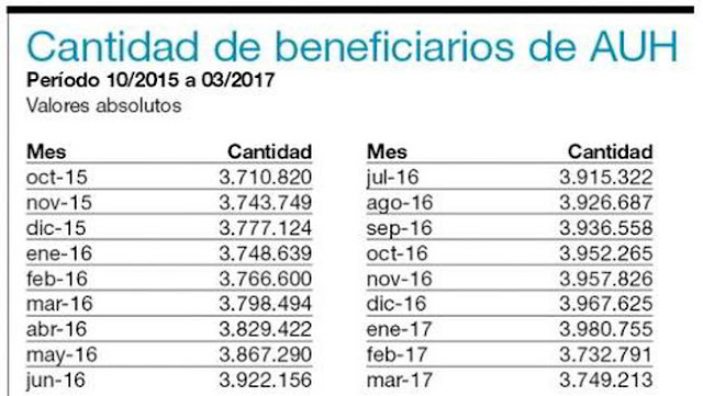 En diciembre de 2015 la cantidad de beneficiarios de la AUH eran 3.777.124 personas. Luego el número fue subiendo en línea a como lo venía haciendo durante el kirchnerismo a 3980.755 en enero de este año. Sin embargo, en los meses siguientes comenzó a caer y en marzo tocó un piso de 3.749.213 personas, 27.911 beneficiarios menos que en diciembre de 2015 pese a que desde entonces la desocupación y la pobreza crecieron. “Esta decisión no resulta aislada. Se enmarca en la política estatal de reducción del gasto social, como la suspensión de medicamentos para jubilados, el retiro de las pensiones para personas con discapacidad, madres de siete hijos o por viudez, o las masivas suspensiones del Plan Progresar”, remarcan Strada y Letcher.