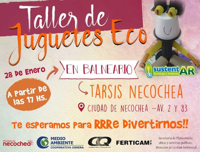 Con el aporte de la Dirección de Gestión Ambiental municipal, a cargo del Ing. Martin Bruno, y la organización de la Cooperativa Obrera, se desarrollará este fin de semana en las playas de Necochea y Quequén talleres de Juguetes Eco, destinado a niños que quieran divertirse y hacer manualidades con material descartable, de manera libre y gratuita.