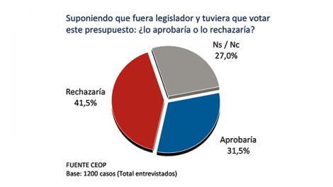Un indicativo de las dudas de ese conglomerado está en la votación del presupuesto. A la pregunta inicial, la mitad dice que hay que aprobar lo enviado por el Ejecutivo y una mitad afirma que hay que rechazarlo. Y cuando se reformula la pregunta pidiéndole al encuestado que se ponga en el lugar del senador, hay una mayoría que se inclina por votar en contra, aunque entre los independientes son más los que votarían a favor, con alta proporción de los que dicen que no saben qué harían.