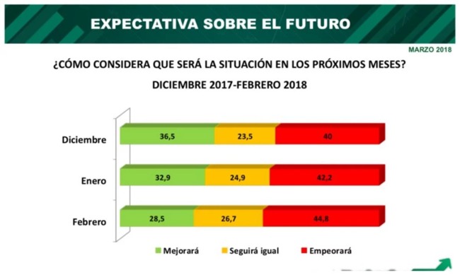 Por su parte, consultado sobre las expectativas de futuro, el 44,8% piensa que será peor y solo un 28,5 tiene esperanzas que mejorará.