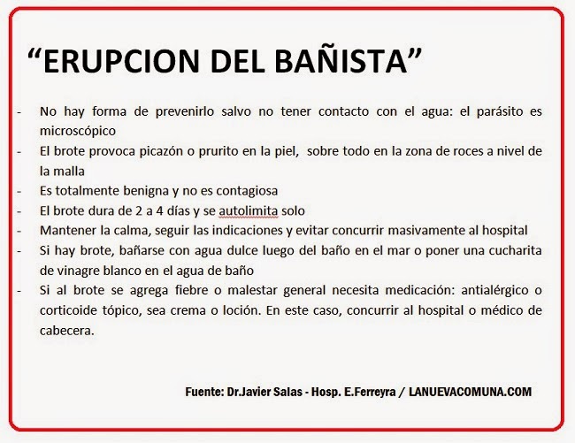Desde el área de salud municipal, se dieron a conocer algunas aclaraciones y recomendaciones frente al brote alérgico que aparece por estos días en muchos bañistas de nuestras playas, sobretodo en niños.