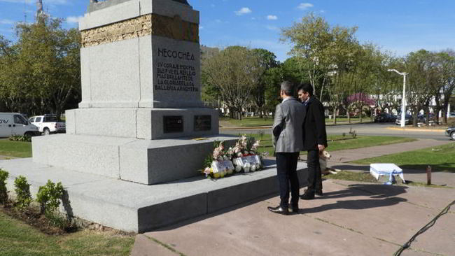 Por último, el operativo se reiteró en el monumento al general Mariano Necochea, donde además, el intendente López brindó palabras alusivas, luego de que lo haga Jorge Constantino, miembro de la Logia Masónica Sol Argentino Nº160, quien trazó un emotivo recuerdo del general Necochea, en el que enumeró batallas y conquistas.