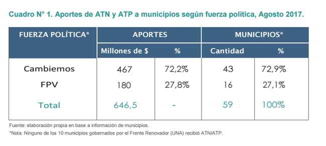 En un muy interesante trabajo de la consultora Analogías sobre la distribución de los aportes del tesoro nacional (ATN) y provincial (ATP) entre enero y julio de 2017, la provincia de Buenos Aires recibió $646,5 millones en concepto de Aportes del Tesoro (fondos de origen nacional y provincial).