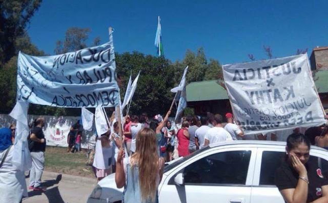 Dentro del marco de su recorrida por Monte Hermoso, Laprida y Tres Lomas, los tres distritos de la sexta sección electoral, la gobernadora de la provincia de Buenos Aires María Eugenia Vidal se topó con vecinos autoconvocados, que reclamaron por los docentes, la libertad a Milagro Sala y justicia por Katherine Moscoso.