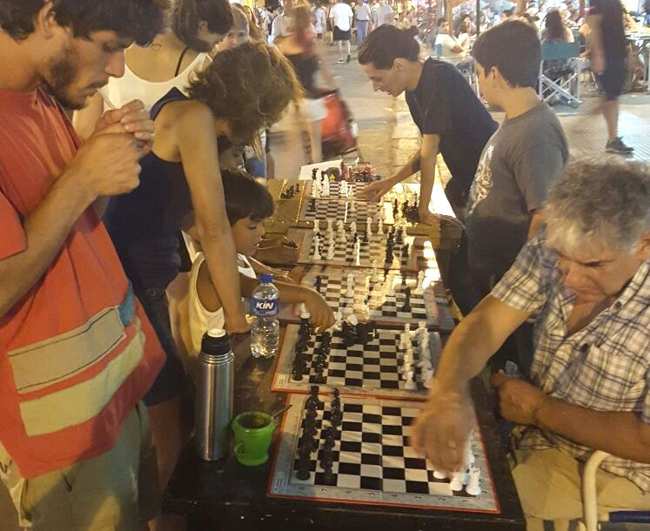 En ese sentido, los profesores Carlos Hospitaleche y Luis Decastelli brindaron clases y partidas simultáneas didácticas, ante la presencia de grandes y chicos que se detuvieron para observar cada movimiento en el tablero.