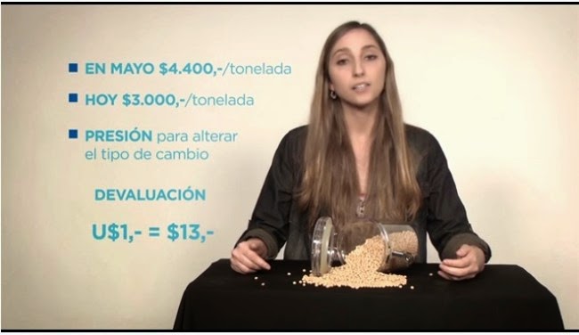 Si hubieran exportado en el mes de mayo hubieran obtenido 4.400 pesos por tonelada, si exportaran hoy obtendrían 3000 pesos por tonelada. Ahora como no pueden controlar el precio internacional de la soja, si pueden ejercer presión para alterar el tipo de cambio local y presionar para una devaluación. Hoy necesitarían un dólar a 13 pesos para conseguir la misma cantidad de pesos por tonelada que hubieran conseguido si exportaban en el mes de mayo ¿sabes cómo quieren compensar eso que dejaron de ganar? Adivina! Te la quieren sacar de tu bolsillo, porque cada vez que hay una devaluación los precios aumentan y tu salario vale menos .