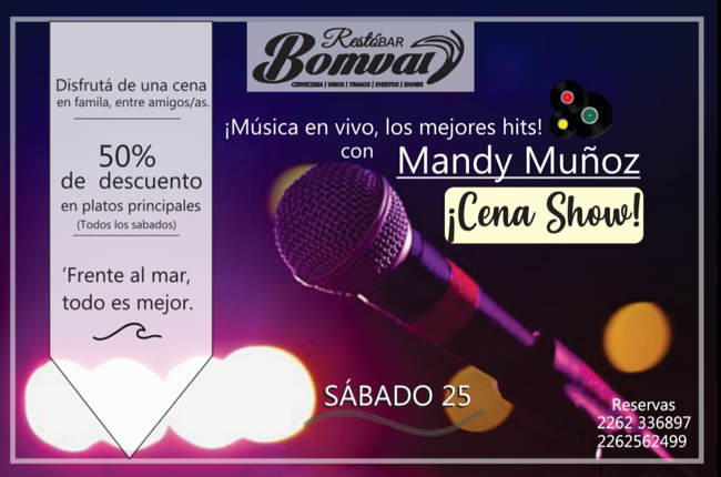 MANDY MUÑOZ VUELVE A PRESENTARSE EN BOMVAI (AVDA. 2 Y PINOLANDIA) CON NUEVO SHOW DE HITS DE TODOS LOS TIEMPOS, ROMÁNTICOS, BAILABLES.