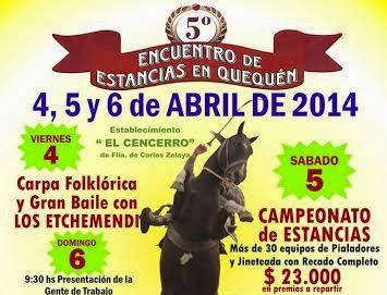 ESTE FIN DE SEMANA, DESTREZAS CRIOLLAS EN EL ENCUENTRO DE ESTANCIAS EN QUEQUEN