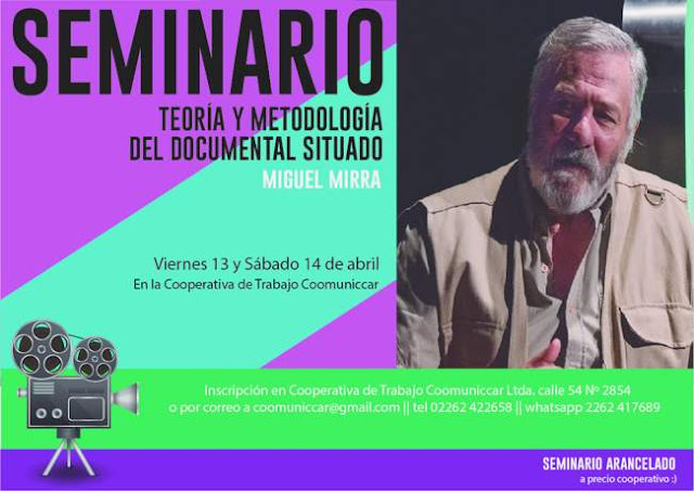Los días viernes 13 y sábado 14 se llevará a cabo el Seminario Intensivo “Teoría y Metodología del Documental Situado” a cargo del documentalista argentino Miguel Mirra en la Cooperativa de Trabajo Coomuniccar.