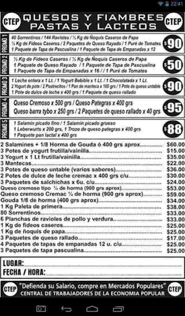 En la imagen de abajo puede verse un detalle de productos y precios correspondientes: