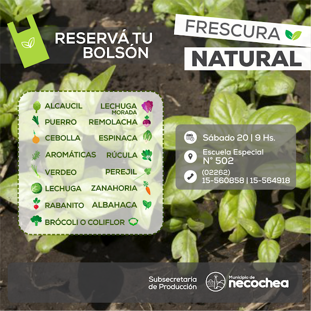 La sana y económica propuesta del grupo horticultor local Frescura Natural se podrá conseguir esta semana en dos instituciones sin fines de lucro de la ciudad, ubicadas en puntos estratégicos para posibilitar que cada vez más vecinos puedan hacerse de la oferta.