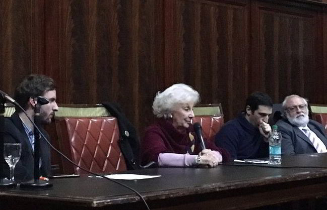 La presidenta de Abuelas de Plaza de Mayo, Estela de Carlotto, participó este lunes de una charla sobre los alcances del fallo Muiña de la Corte Suprema, que implementa el 2×1 para casos de lesa humanidad; la actualidad de los Derechos Humanos y el rol de la Justicia, que tuvo lugar en la Facultad de Derecho de la Universidad de Buenos Aires (UBA).