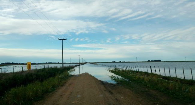 Por las inclemencias meteorológicas de las últimas horas, las tareas del Ente Vial Rural se encuentran detenidas. En todo el Distrito, los campos presentan grandes superficies cubiertas de agua y el escurrimiento es lento. Algunos pasos están cortados.