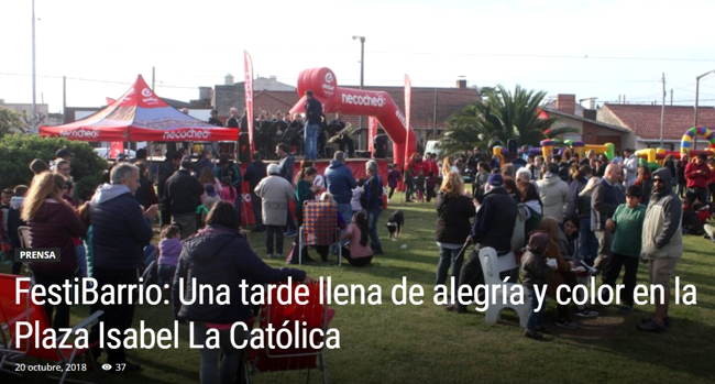 Una nueva edición de FestiBarrio se desarrolló esta tarde para seguir celebrando el 137° Aniversario de Necochea, esta vez en la Plaza Isabel La Católica y con un marco notable de niños y familias enteras que disfrutaron de cada una de las actividades que propone este ciclo itinerante organizado por el Programa de Participación Ciudadana en conjunto con diversas áreas del municipio.