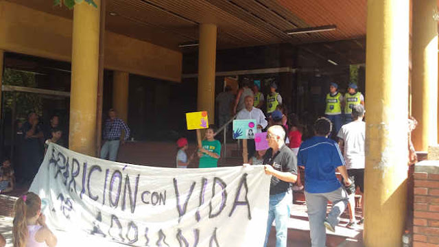 En horas del mediodía, familiares y allegados de Adriana Caballero se manifestaron en las puertas del Centro Cívico de Necochea, ubicado en calles 58 y 61, con el objetivo de reclamar avances en la investigación que permitan alcanzar mayores certezas acerca del destino de la joven desaparecida.