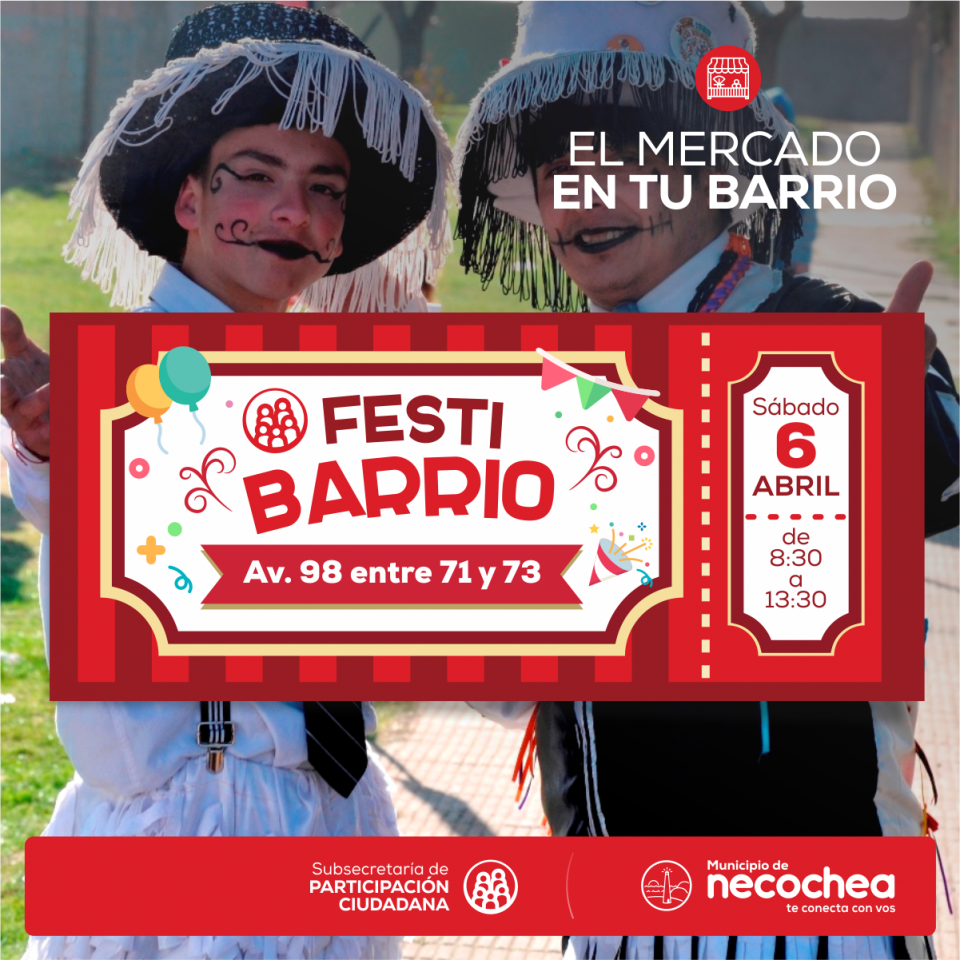 Este sábado 6 de abril, entre las 8:30 y las 13:30, se desarrollará en la Avenida 98 entre 71 y 75 la segunda fecha de El Mercado en tu Barrio, la exitosa feria organizada por la Subsecretaría de Producción de la comuna que busca llevar las mejores ofertas en artículos de la canasta básica a los vecinos de Necochea y Quequén.