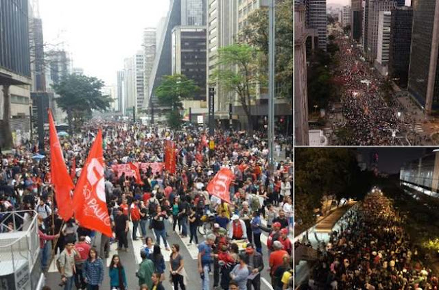 Convocada por los Frentes Brasil Popular y Pueblo Sin Miedo, la protesta en el principal centro económico y financiero de esta nación suramericana colmó la emblemática Avenida Paulista, donde durante toda la pasada semana tuvieron lugar manifestaciones similares.