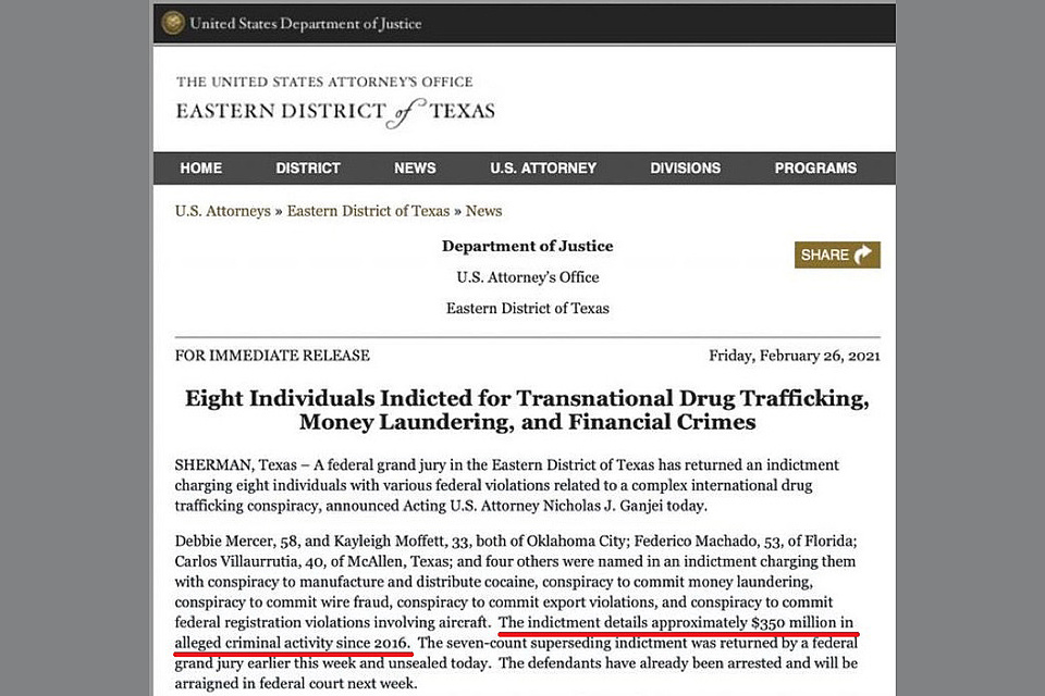 “350 millones de dólares en actividad criminal” es una frase que figura en la carátula del expediente que en el Distrito Este de Texas exige la localización de Federico (Fred) Machado, considerado financista de José Luis Espert. La acusación lo involucra con cargos como “conspiración para fabricar y distribuir cocaína; conspiración para lavar dinero; conspiración para cometer fraude; conspiración para violar normas de exportación; y conspiración contra las reglas federales de registro de aeronaves”. En total hay nueve imputados, encabezados por Debbie Mercer Erwin (condenada a 16 años) y Machado como presunto líder de la asociación ilícita.