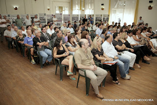 Ante un Salón de Actos del municipio colmado, con la presencia de los integrantes del Departamento Ejecutivo en pleno, el presidente del Entur, profesor Cristian Corral, el titular del Consorcio de Gestión de Puerto Quequén, Dr. José Luis De Gregorio; el presidente del Pami, Dr. Juan José Piro; el comisario distrital César Pardo, el dirigente Roberto Porcaro y los integrantes del bloque de concejales del Frente para la Victoria, el intendente municipal, profesor Horacio Tellechea, realizó la presentación de lo que será la transformación del frente costero, obra que comenzará a desarrollarse en el segundo semestre del presente año. El intendente municipal agradeció la presencia de todos, pero fundamentalmente al equipo que «ha trabajado mucho en la conformación de este proyecto. Para nosotros es muy importante venir a contarles acerca de algo en lo que venimos trabajando desde hace mucho tiempo, inclusive desde mucho antes de las elecciones de agosto y de octubre y que lo comenzamos a abordar con el propio Néstor Kirchner un 12 de enero de 2010». Tellechea resaltó el trabajo del director del Parque Miguel Lillo, Ariel Montero, «quien ha trabajado mucho en este proyecto, luego de que confirmamos por parte de la presidenta Cristina Fernández de Kirchner un importante respaldo que se traduce en 160.000.000 de pesos para realizar esta obra, junto también a muchos integrantes del equipo en torno a esta propuesta que entendemos como una obra emblemática, que marcará seguramente un antes y un después». El intendente Tellechea comenzó presentando el proyecto realizado en power point, con una frase de Néstor Kirchner «Vengo a proponerles un sueño y de los sueños se pueden decir muchas cosas, menos una, que son mentira. Entonces, dentro de los sueños, cuando se tiene el coraje de hacerlos realidad, uno va transitando un camino que le permite poner en práctica aquello que alguna vez ideó, tanto como fueron las avenidas 91 y 42, que hoy son una realidad y que tienen que ver con un compromiso que asumimos oportunamente. Uno cuando se compromete se arriesga, a mi me gusta asumir este tipo de desafíos porque marcan el compromiso y porque fundamentalmente son metas medibles». El profesor Tellechea siguió diciendo que «por eso, ese vengo a proponerles un sueño, que alguna vez dijo Kirchner, se traduce en algo en lo que hemos venido trabajando. A pesar de que no le gusta que lo nombre, en este sueño tiene muchísimo que ver, no solamente quien es mi referente político, sino también un amigo que he cosechado y que siempre está con el perfil bajo como estandarte, pero no puedo dejar de nombrarlo, que es Roberto Porcaro, porque ha trabajado mucho y ha hecho un gran esfuerzo también, siendo artífice permanente en este trabajo, que nos ha permitido la aprobación y concreción por parte de la misma presidenta de la nación de un respaldo semejante para Necochea».