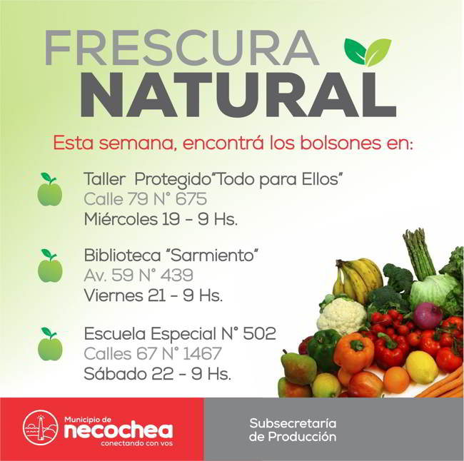 La oferta del grupo horticultor Frescura Natural se podrá conseguir esta semana en tres puntos de venta de distintos barrios de la ciudad. El Taller Protegido “Todo para Ellos” se hará cargo de la comercialización el próximo miércoles 19 de abril en su sede de calle 79 al 675; los integrantes de la Biblioteca Popular Sarmiento harán lo propio en la jornada del viernes 21, en las instalaciones ubicadas en Avenida 59 N⁰ 439; y la Asociación “Julieta Pagano” cerrará el periodo de expendio el sábado 22 en la Escuela Especial Nº 502, en calle 67 Nº 1467