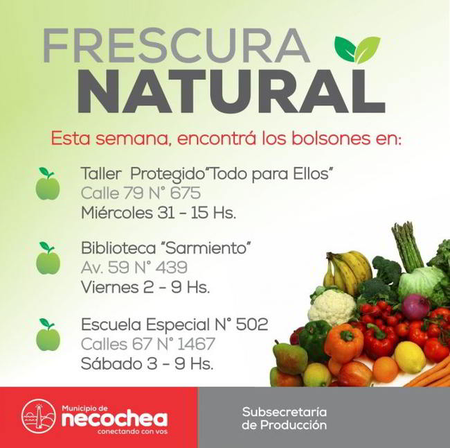 Bolsones con acelga, perejil, puerro, corte, rúcula y espinaca; papa y cebolla por kilo; morrones verdes y choclos por pares; medio kilo de zanahoria, un zapallo anco o Cabucci, una planta de lechuga, una cabeza de ajo y un apio; medio repollo y un paquete de aromáticas. Esta es la imperdible oferta de Frescura Natural para la semana en curso.