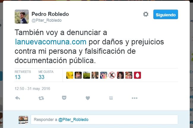 Por esta razón, el joven funcionario y dirigente PRO publicó por las redes sociales que iniciaría acciones legales contra este portal de noticias. Desde las redes sociales, le llovieron los comentarios de tono burlón: