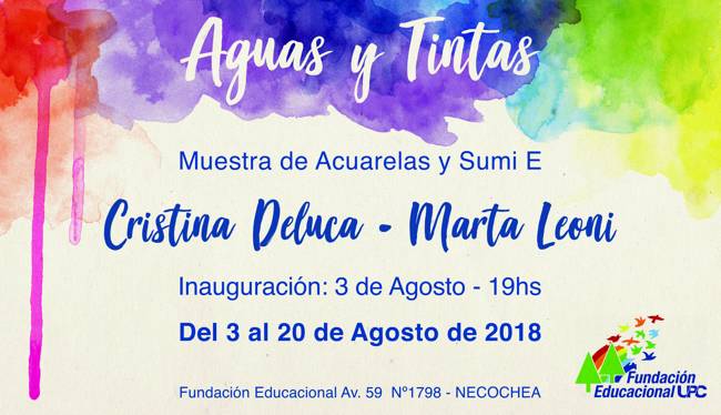 La Fundación Educacional de la UPC, invita al público en general a la Muestra de Acuarelas y Sumi E, «AGUAS Y TINTAS» de Cristina Deluca y Marta Leoni.