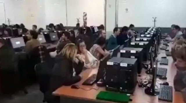 Según se puede observar en un video difundido por C5N, los empleados del Correo dejaron de cargar la información en el centro de cómputos, en el momento en que la ex mandataria ya se ubicaba a menos de un punto de distancia del candidato oficialista.
