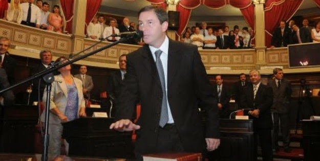 GASTON GUARRACINO, AL MOMENTO DE JURAR COMO SENADOR PROVINCIAL.