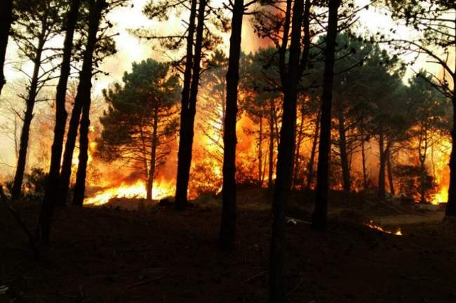 Feroz incendio en los bosques de Valeria del Mar amenaza la zona residencial de Cariló