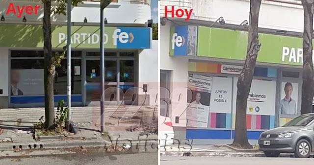 Antes el local del Partido Fe con la imagen de Momo Venegas en la vidriera y hoy ya no está.