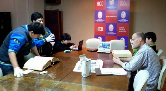 En el marco del programa Concejo Abierto y de las tareas de puesta en valor y divulgación del patrimonio histórico del Departamento Deliberativo local, los alumnos fueron recibidos por el Profesor Alejandro Andersen, quien les dio acceso a la documentación histórica que se encuentra en los archivos del HCD referida al tema solicitado.