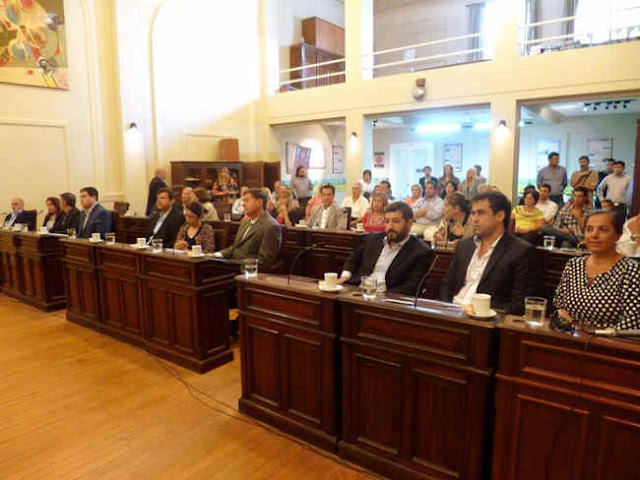 El día viernes 29 de Enero de 2016 se realizó una Sesión Extraordinaria del Honorable Concejo Deliberante, Presidida por el Concejal Dr. Pablo Aued. Se encontraba presente la Secretaria del Honorable Cuerpo Legislativo Dra. María Jimena Ruiz, y los siguientes Concejales: Cristina Biar, Valentín Bustillo, Fernando Aguilera, José Luis Pagliaro, Paula Hernández, Carolina Robert (FR); Arturo Rojas, Marisa Roldán, Sandra Antenucci, Gabriela Góngora, Juan Roldán (UP-FE); Francisco Medina, Jorge Martínez, María Eugenia Ruiz (FPV); Alberto Esnaola (UCR); Ana María Asa (FPV-PJ); Ricardo Calcabrini (CN); Mario La Battaglia (PS).