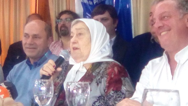 El cierre del Pre-Congreso de Comunicación organizado por la Universidad de las Madres se realizó en el salón de actos del hotel de ATILRA (sindicato de industria láctea). Desbordado de asistentes que participaron del encuentro y quisieron escuchar la palabra de la tan querida luchadora social, Hebe dijo que «estos locos que nos gobiernan no saben cuanto el pueblo ama a Cristina».